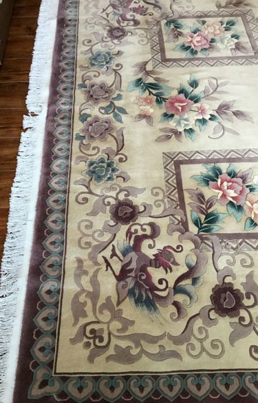 中国緞通は手織り絨毯の中でも糸の使用量と毛足の長さから大変重く、お一人での運送が難しい絨毯ですので、安全面を考慮してクリーニングスタッフがお客様のご自宅までお引き取りに伺いました。